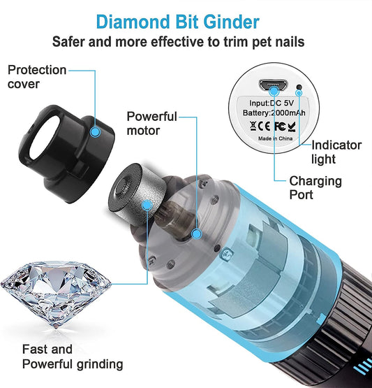 Dog Nail Grinder Quite with 20h Working Time, Stepless Speeds Rechargeable Pet Claw Trimmer with Clipper and File for Large Medium Small Dogs Cats Pets